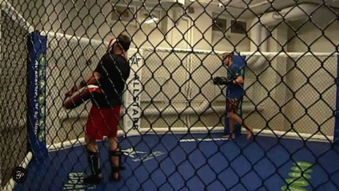 Veja o gif oferecido pelo Zombie Prophet, referente a Alexander Gustafsson treinando o chute de Anthony Pettis, campeão peso-leve do UFC, aplicado sobre Ben Henderson na disputa de cinturão no WEC, marcado na história das artes marciais mistas.